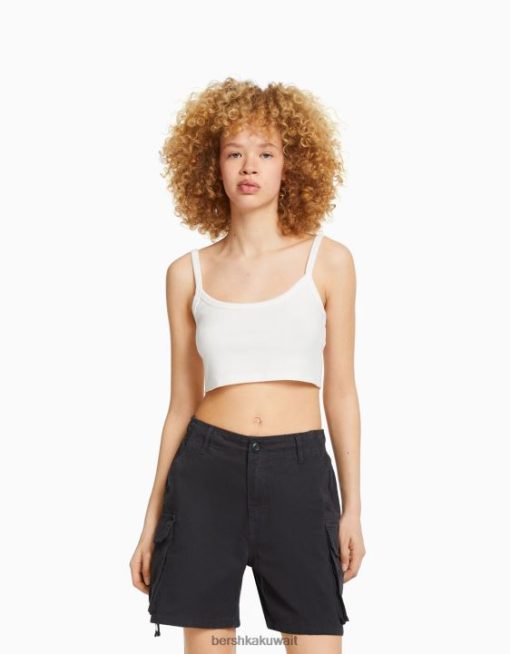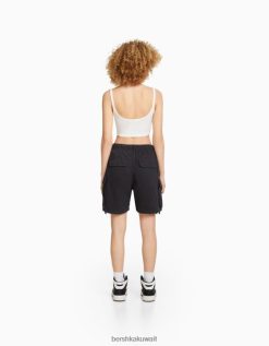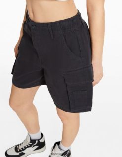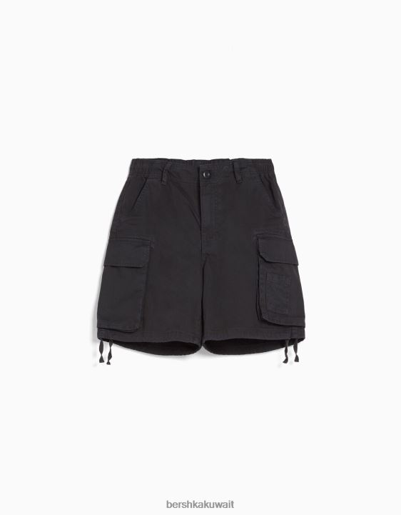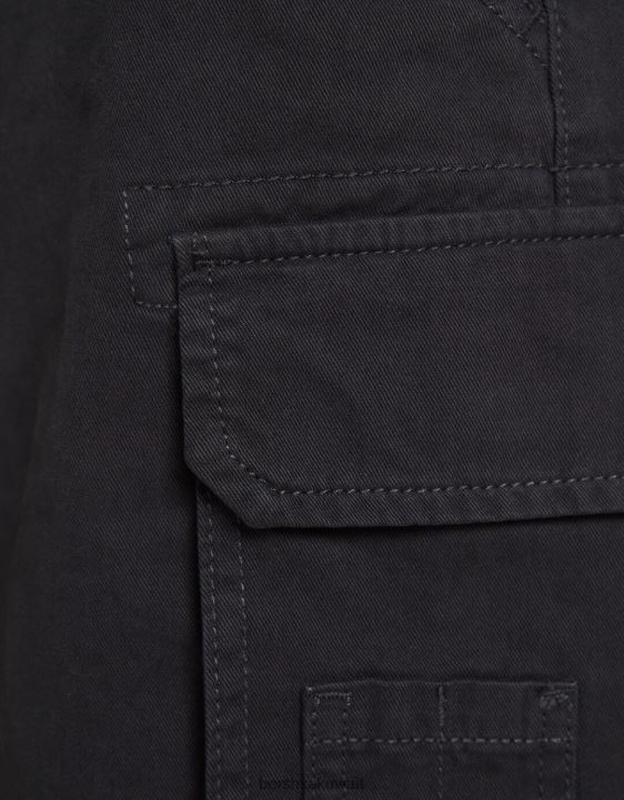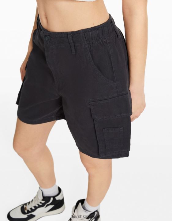 Bershka للجنسين شورت برمودا للشحن من القطن مع أحزمة الرمادي الداكن 804X4026 ملابس
