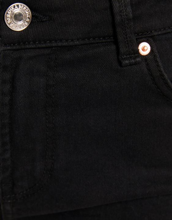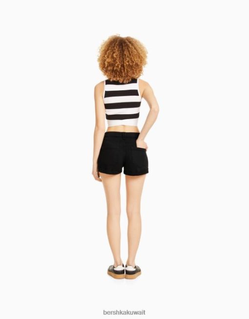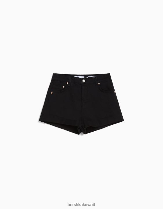 Bershka للجنسين شورت تويل مريح مع حواف مطوية أسود 804X4029 ملابس