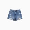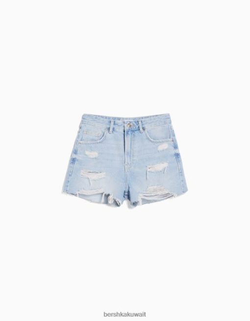 Bershka للجنسين شورت جينز ممزق مع جيوب أزرق فاتح 804X4046 ملابس