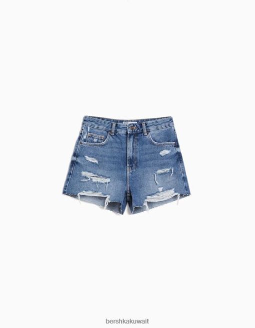 Bershka للجنسين شورت جينز ممزق مع جيوب أزرق 804X4047 ملابس