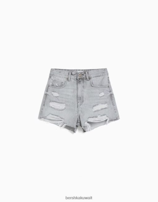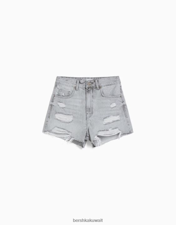 Bershka للجنسين شورت جينز ممزق مع جيوب رمادي 804X4044 ملابس