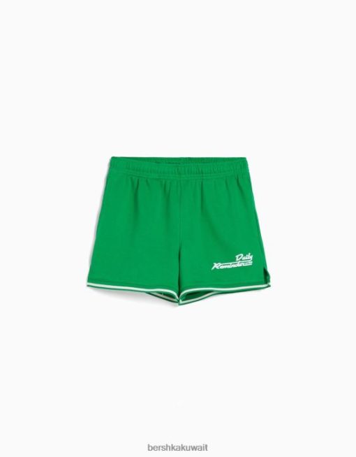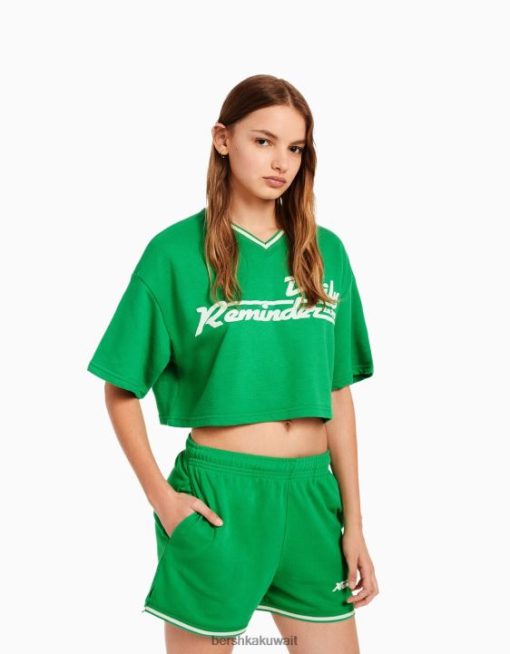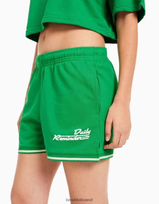 Bershka للجنسين شورت قطيفة مطبوع مع حواف أخضر 804X4062 ملابس
