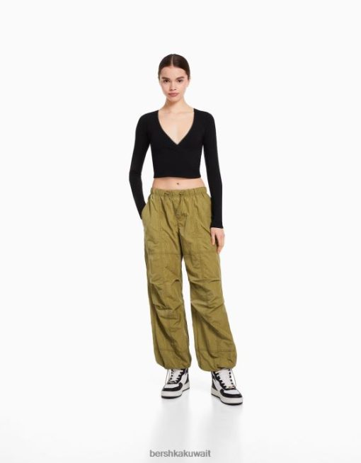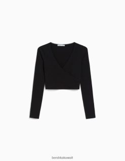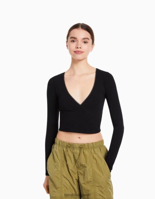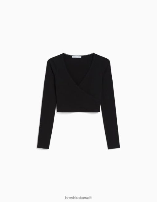 Bershka للجنسين طويلة الأكمام عبرت تي شيرت أسود 804X3755 ملابس