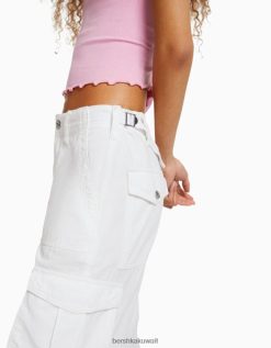 Bershka للجنسين قابل للتعديل تناسب السراويل البضائع على التوالي أبيض 804X3867 ملابس
