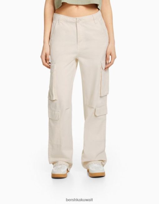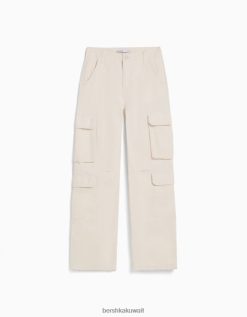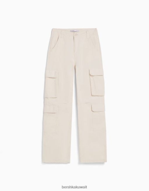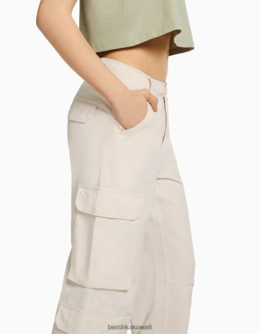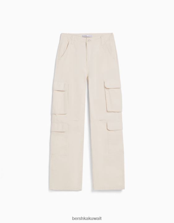Bershka للجنسين قابل للتعديل متعدد الجيوب نسيج قطني طويل السراويل البضائع كريم 804X3872 ملابس