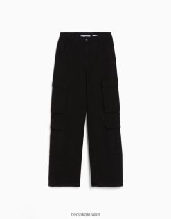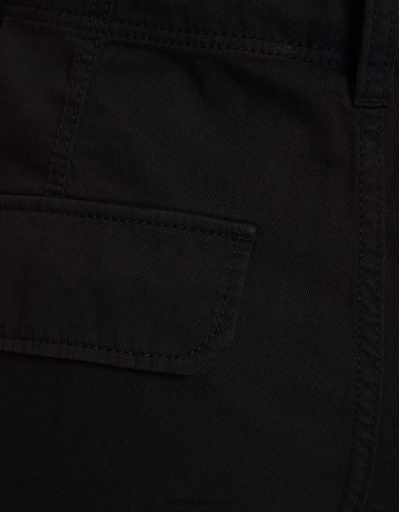 Bershka للجنسين قابل للتعديل متعدد الجيوب نسيج قطني طويل السراويل البضائع أسود 804X3876 ملابس