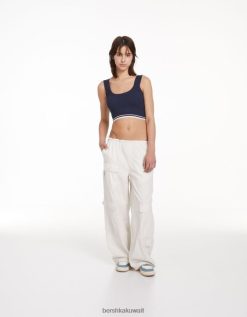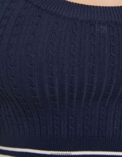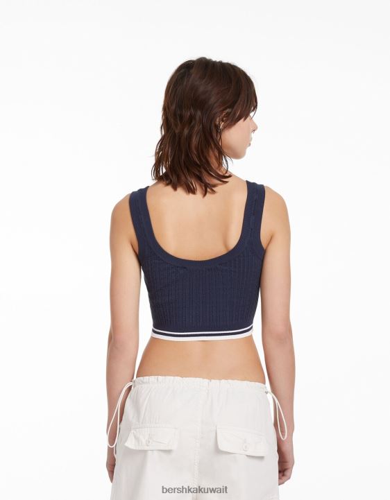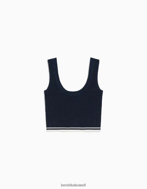 Bershka للجنسين قمة كابل متماسكة أزرق 804X3731 ملابس