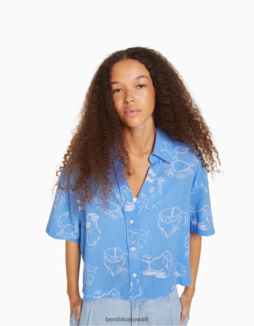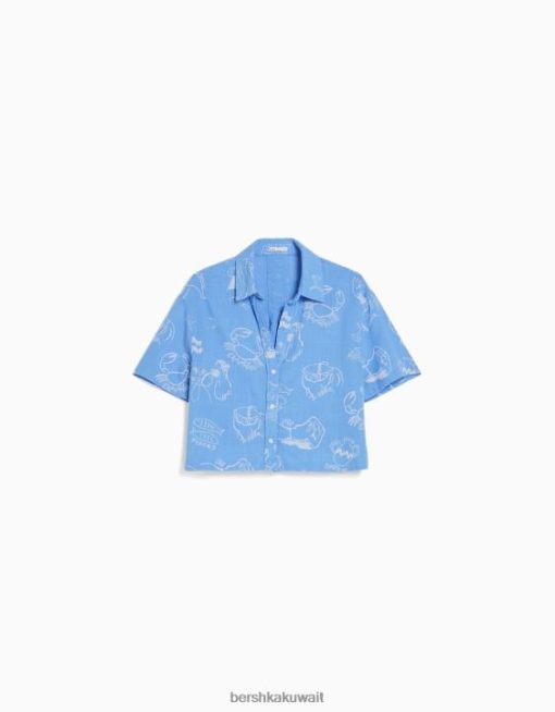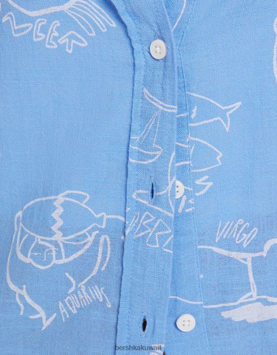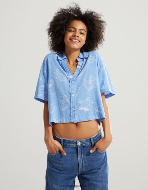 Bershka للجنسين قميص ريفي محكم بأكمام قصيرة أزرق 804X3793 ملابس