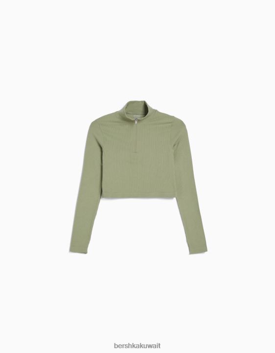Bershka للجنسين قميص طويل الأكمام سلس مع سحاب الكاكي 804X3816 ملابس