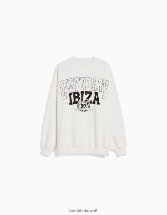 Bershka للجنسين قميص طويل الأكمام مطبوع كريم 804X4128 ملابس
