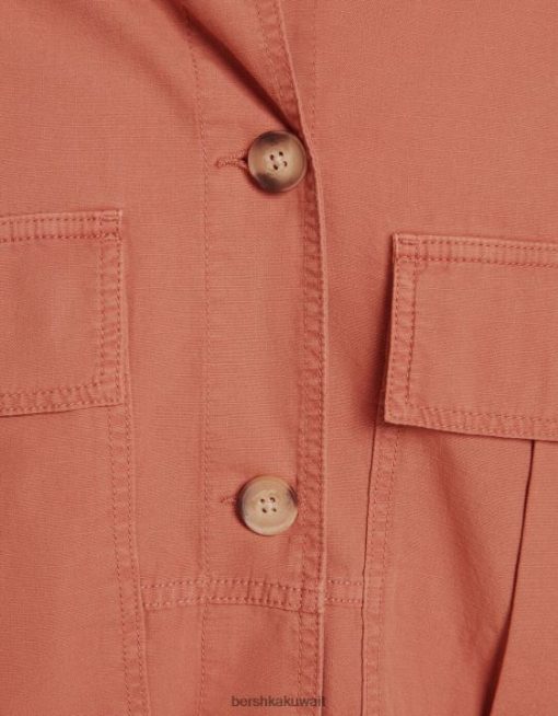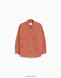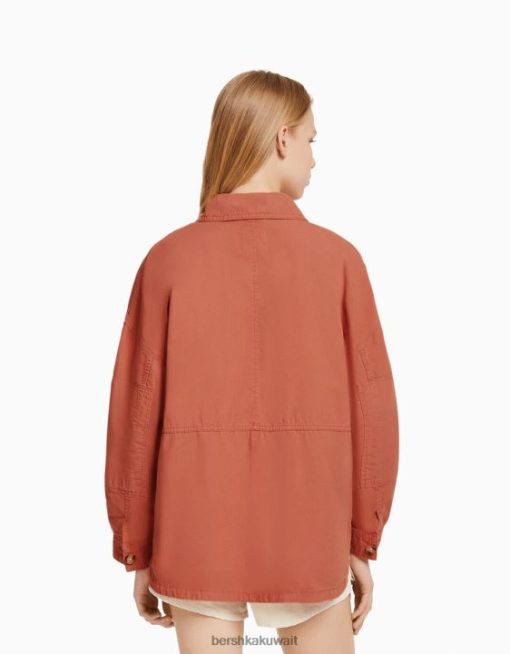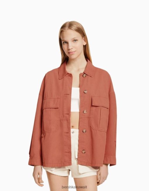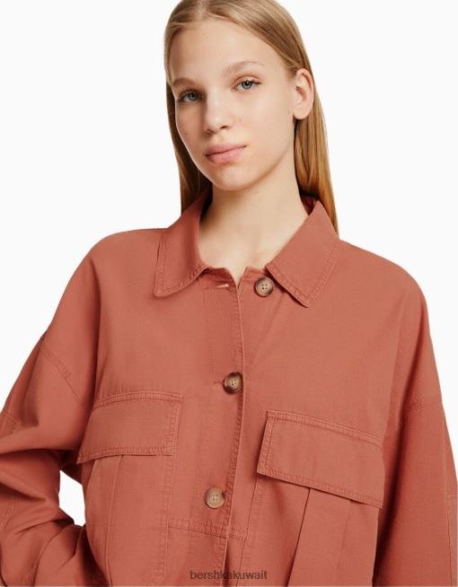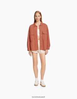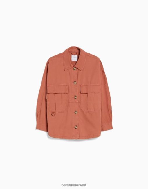Bershka للجنسين قميص طويل الأكمام من القطن مع جيوب لون القرنفل 804X4162 ملابس