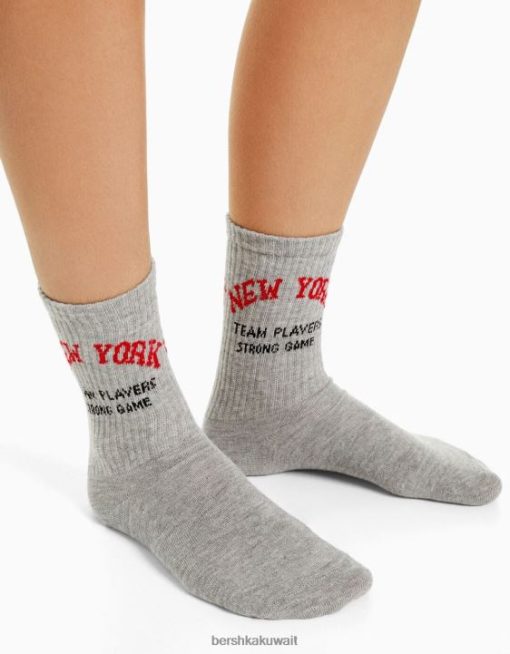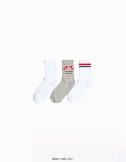 Bershka للجنسين مجموعة من 3 جوارب اسكواش رمادي 804X4199 مُكَمِّلات