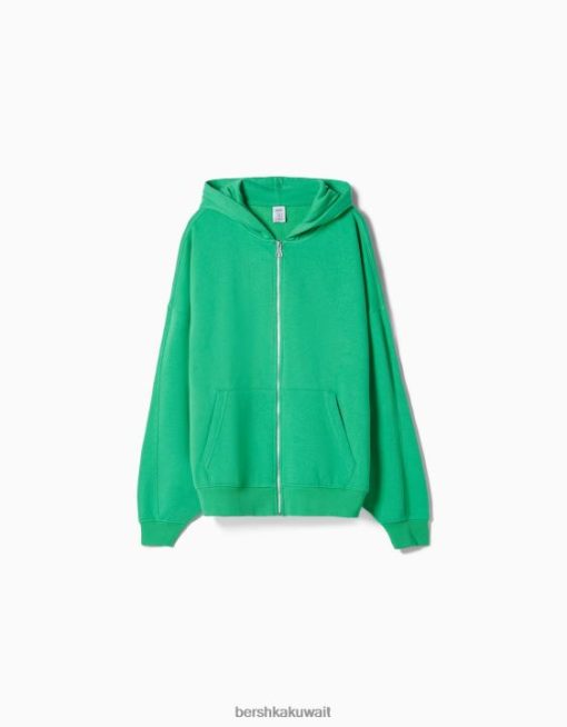 Bershka للجنسين هودي بسحاب كبير الحجم أخضر 804X4127 ملابس