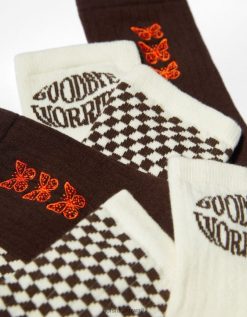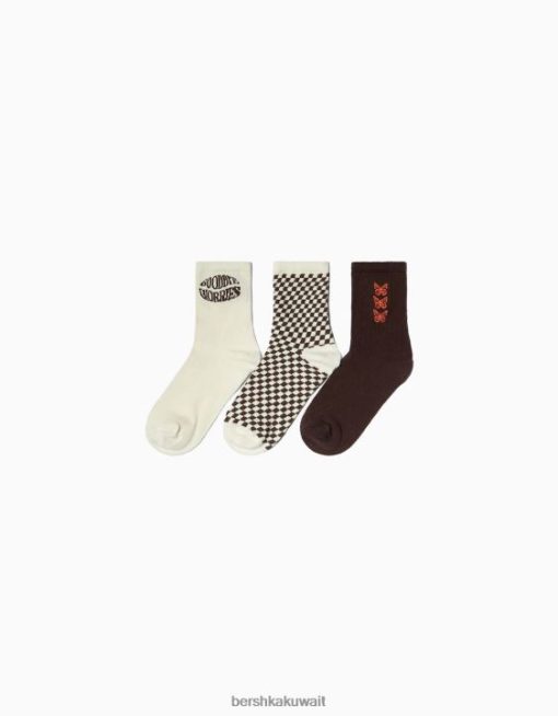 Bershka للجنسين 3 علب جوارب ريترو بني 804X4230 مُكَمِّلات