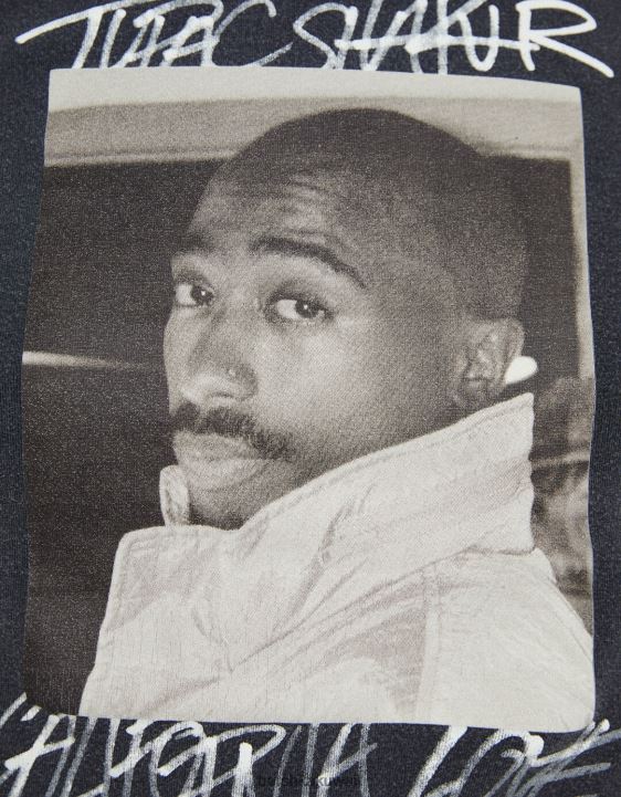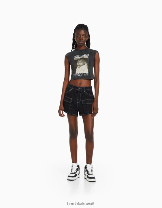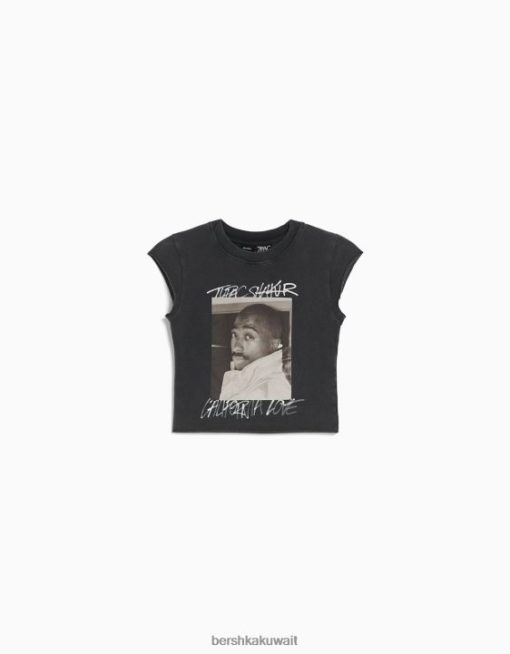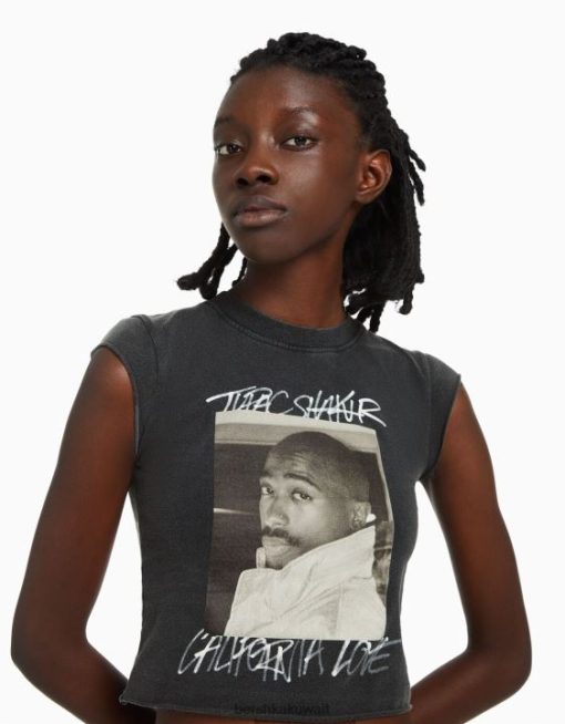 Bershka للجنسين Tupac بلا أكمام تي شيرت قصير طباعة رمادي 804X3694 ملابس