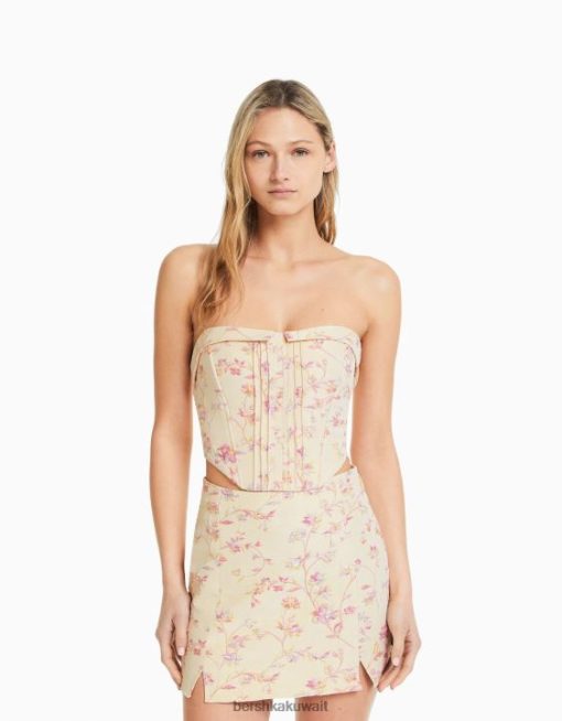 Bershka نحيف أعلى الصدر محكم المطبوعة اللون البيج 804X660 ملابس