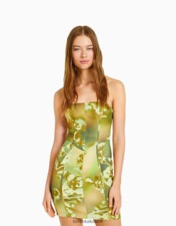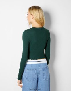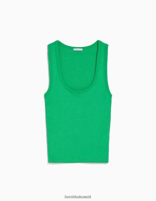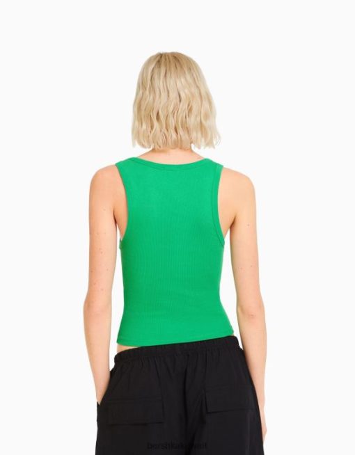 Bershka نحيف أعلى خزان مضلع أخضر 804X317 ملابس