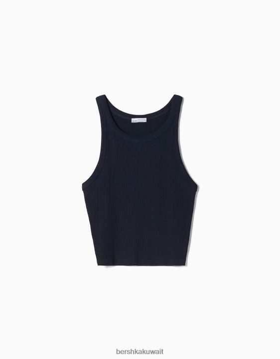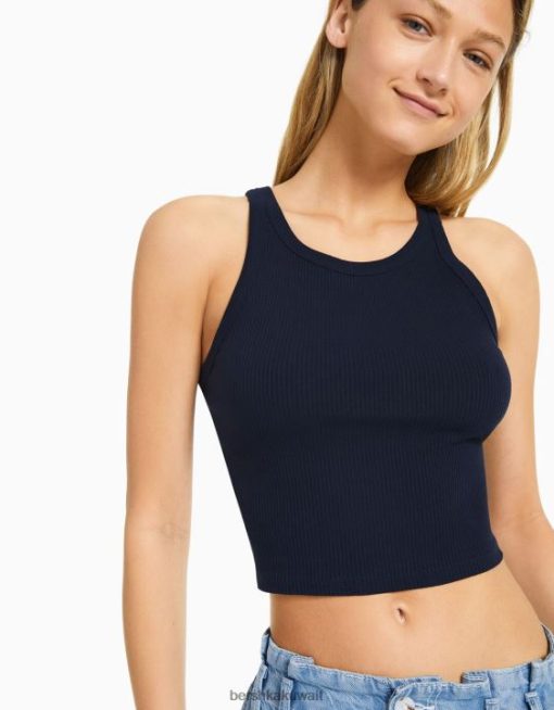 Bershka نحيف أعلى خزان مضلع القوات البحرية 804X422 ملابس