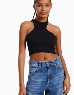 Bershka نحيف أعلى سلس غير متماثل أسود 804X876 ملابس