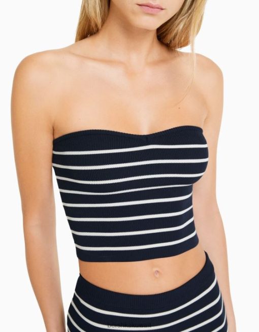 Bershka نحيف أعلى محصول باندو مخطط متماسكة أزرق 804X759 ملابس