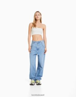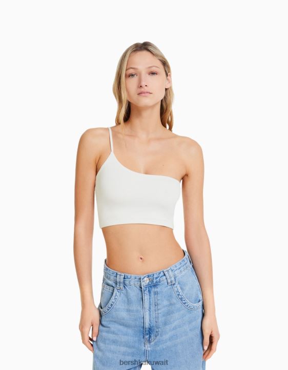 Bershka نحيف أعلى محصول غير متماثل مع حزام من البيض 804X748 ملابس