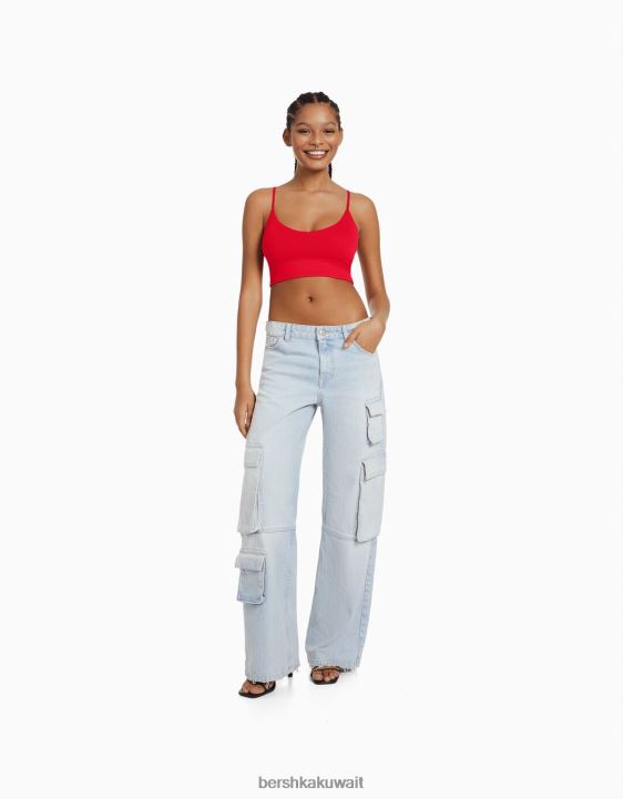 Bershka نحيف أعلى محصول strappy أحمر 804X779 ملابس