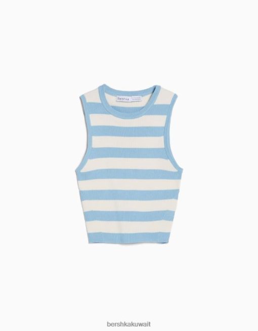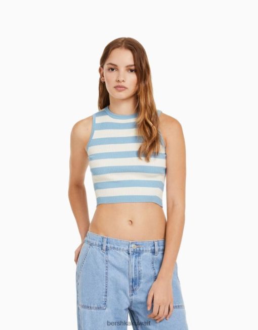 Bershka نحيف أعلى مخطط محبوك بلا أكمام أزرق فاتح 804X883 ملابس