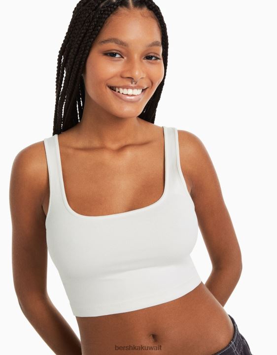 Bershka نحيف أعلى مع أشرطة واسعة أبيض 804X799 ملابس