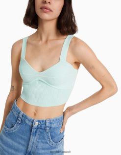 Bershka نحيف أعلى نايلون مضلع مع الأشرطة أزرق فاتح 804X834 ملابس