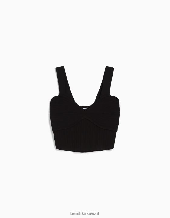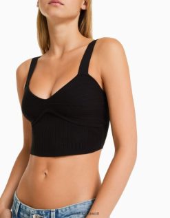 Bershka نحيف أعلى نايلون مضلع مع الأشرطة أسود 804X835 ملابس