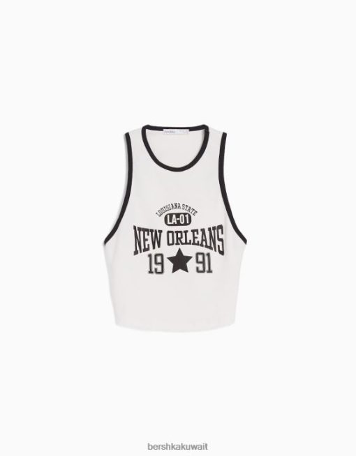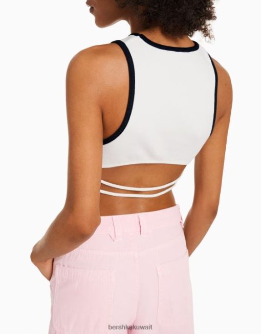Bershka نحيف اسكواش خزان أعلى مع ظهر مفتوح من البيض 804X608 ملابس