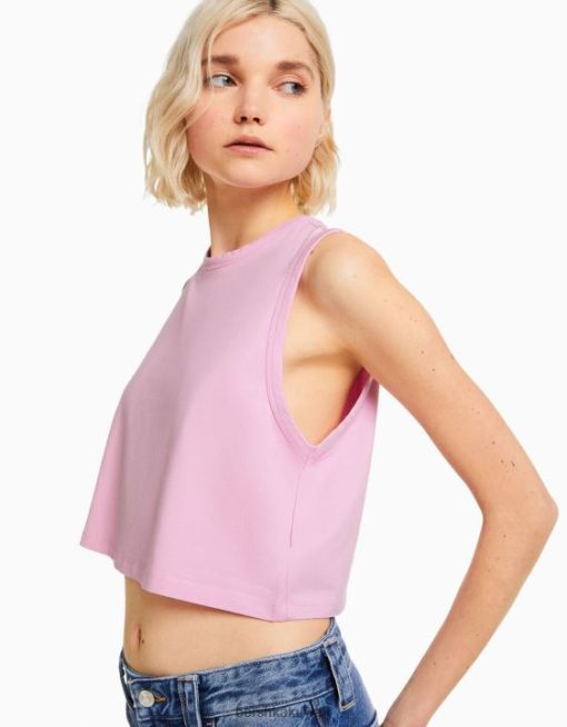 Bershka نحيف اعلى الدبابة لون القرنفل 804X459 ملابس