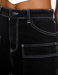 Bershka نحيف السراويل البضائع الدنيم أسود 804X1376 ملابس