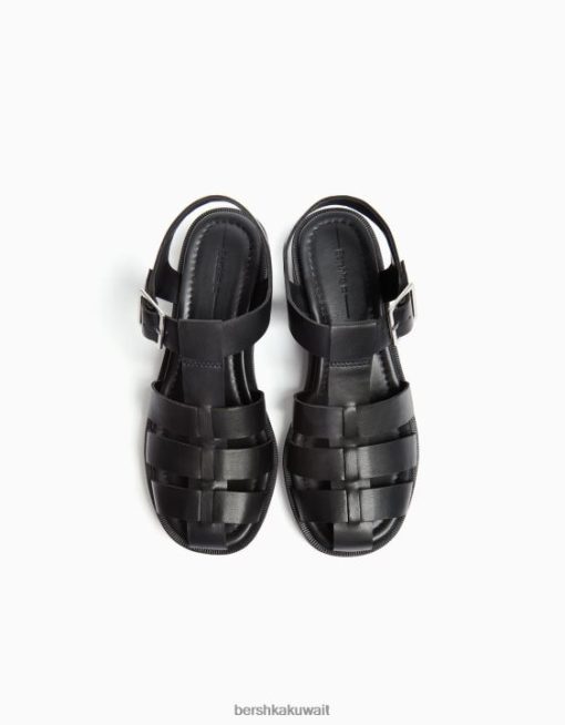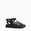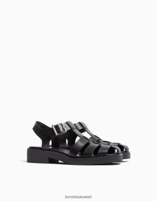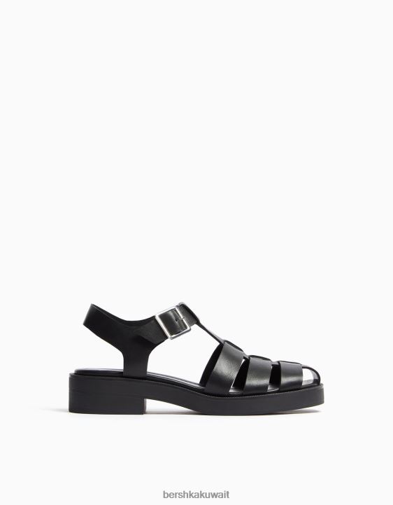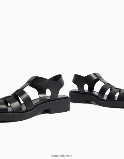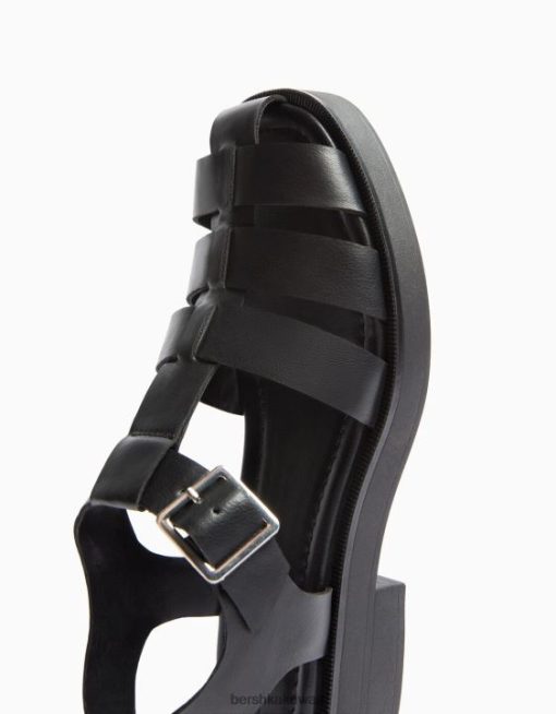 Bershka نحيف الصنادل القفص المسطح أسود 804X2217 الأحذية