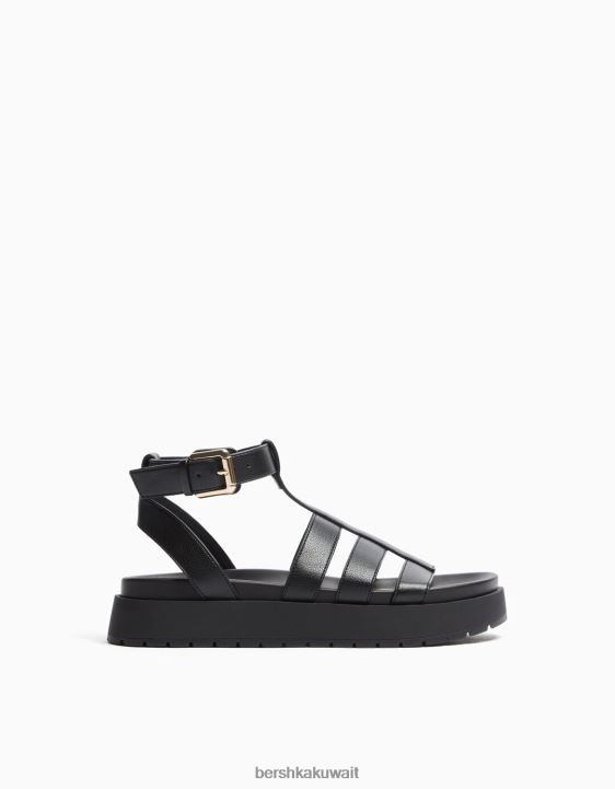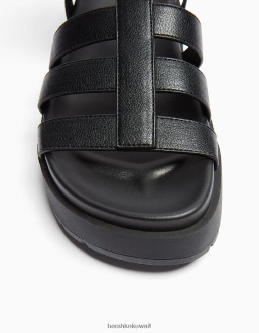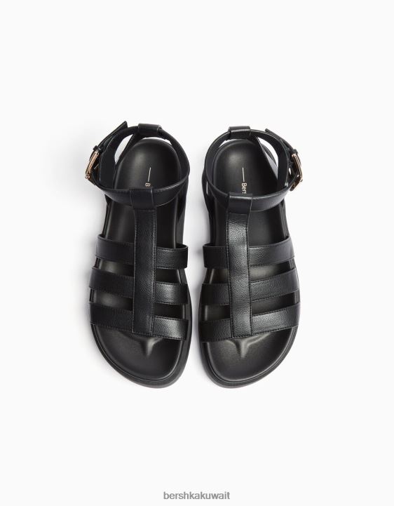 Bershka نحيف الصنادل القفص المسطح أسود 804X2218 الأحذية
