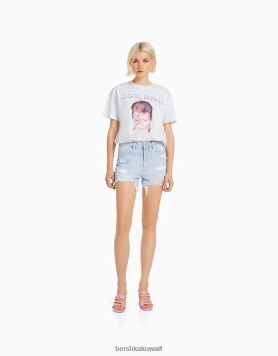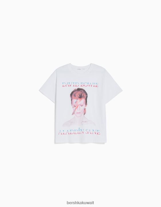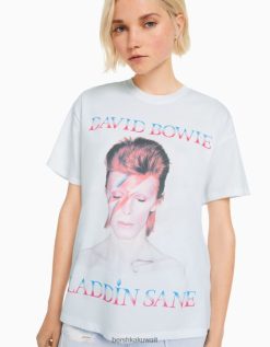 Bershka نحيف بأكمام قصيرة تي شيرت ديفيد باوي أبيض 804X482 ملابس