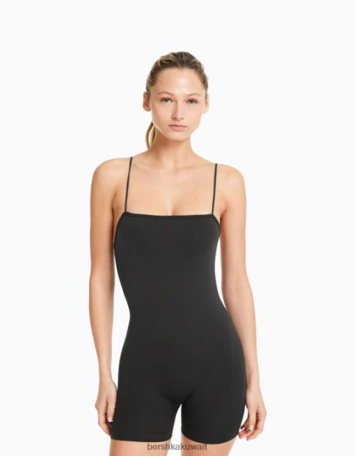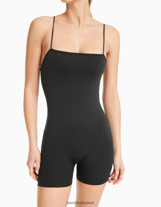 Bershka نحيف بذلة ركوب الدراجات بدون خياطة مع فتحة رقبة مربعة الرمادي الداكن 804X59 ملابس
