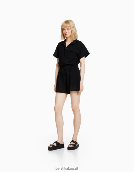 Bershka نحيف بذلة فائدة ريفي أسود 804X4082 ملابس