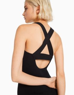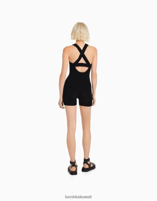 Bershka نحيف بذلة نايلون سترابي أسود 804X54 ملابس