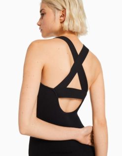 Bershka نحيف بذلة نايلون سترابي أسود 804X55 ملابس