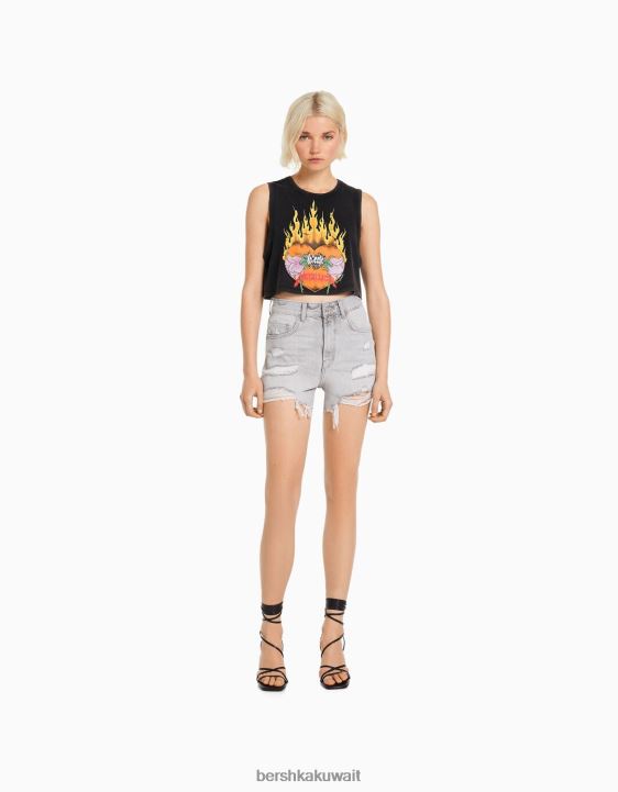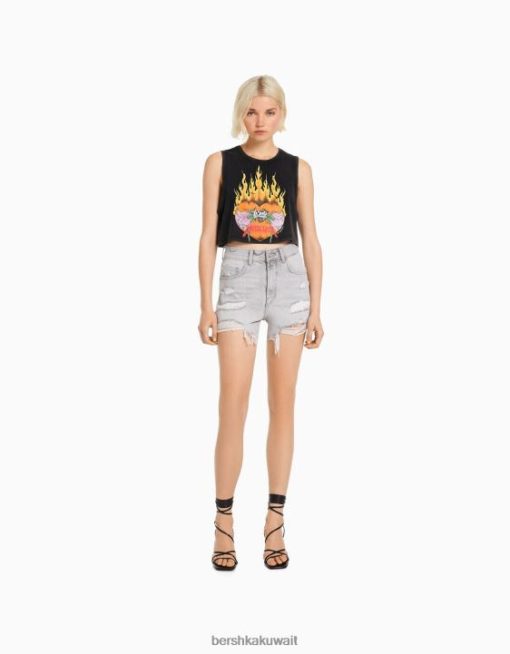 Bershka نحيف بلا أكمام تي شيرت ميتاليكا رمادي 804X469 ملابس