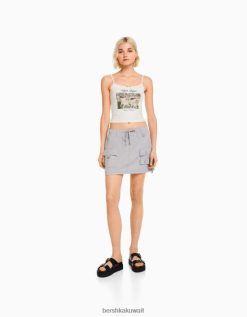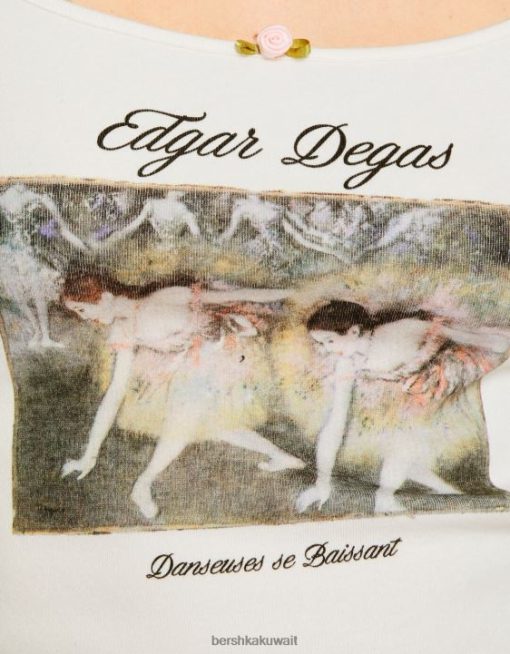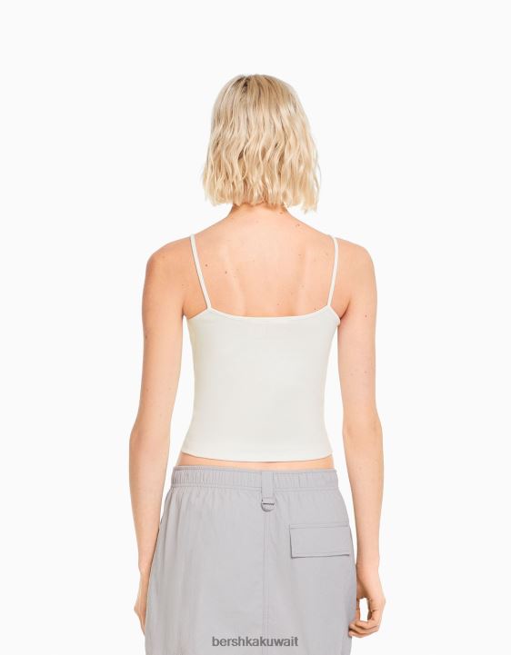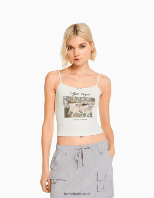 Bershka نحيف بلوزة بلا أكمام بطبعة سلسلة فنية من البيض 804X440 ملابس