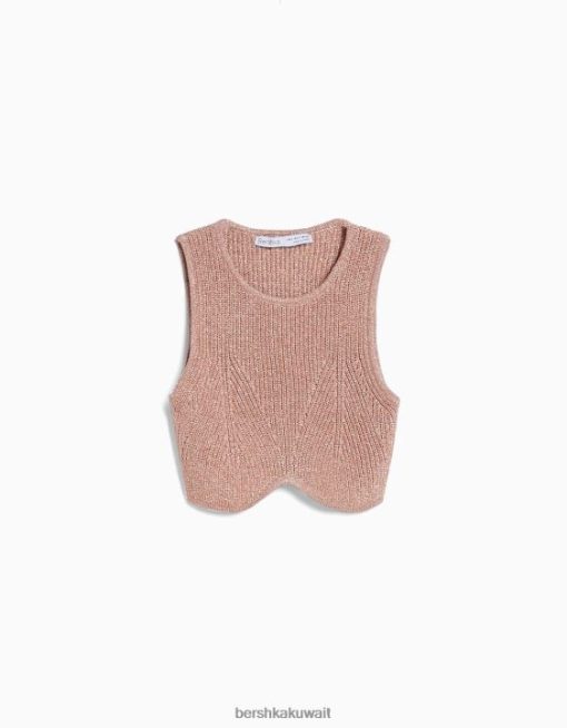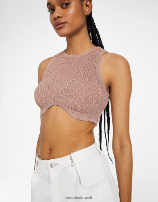 Bershka نحيف بلوزة بلا أكمام متماسكة معدنية لون القرنفل 804X843 ملابس