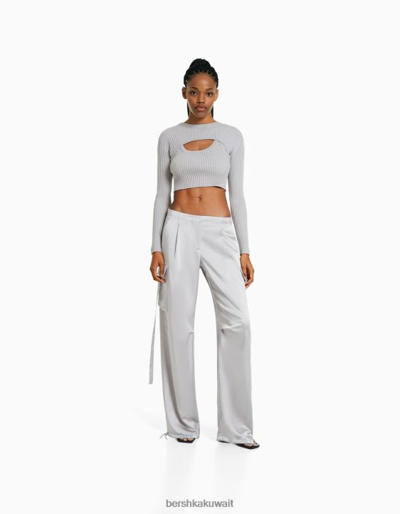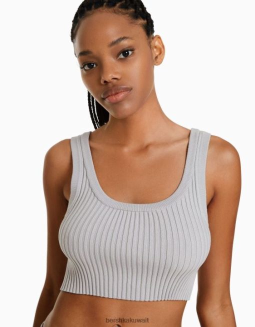 Bershka نحيف بلوزة ضيقة مضلعة رمادي 804X840 ملابس