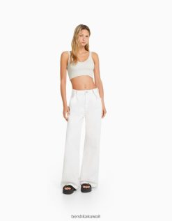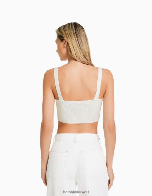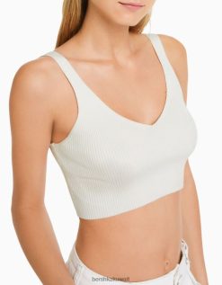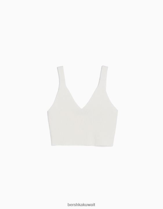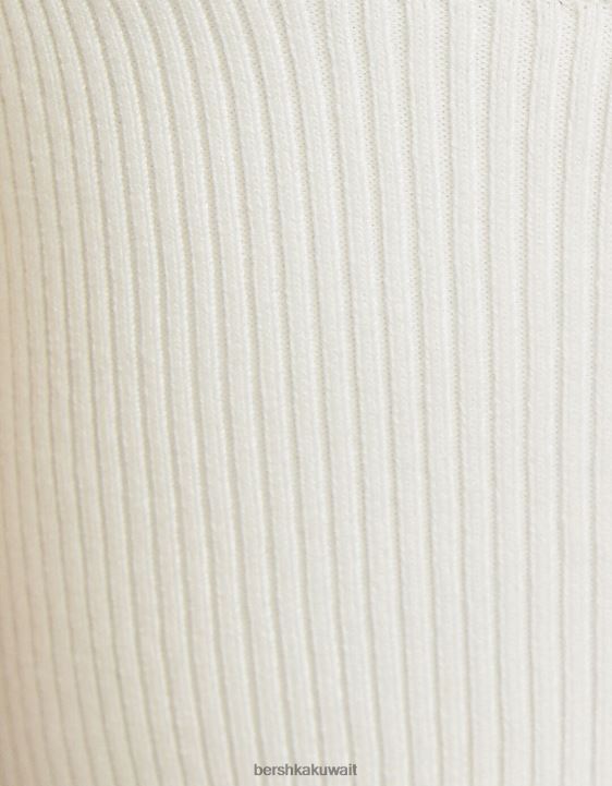 Bershka نحيف بلوزة مضلعة بياقة على شكل V كريم 804X776 ملابس