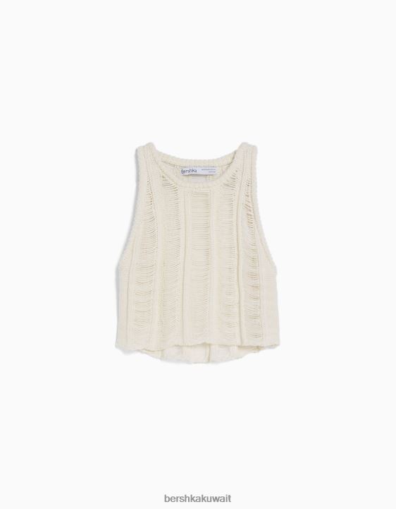 Bershka نحيف بلوزة مفتوحة بلا أكمام كريم 804X1843 ملابس