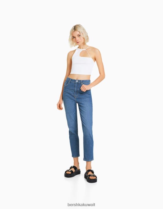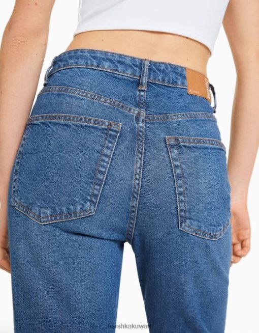 Bershka نحيف بنطال جينز أمي بقصة ضيقة ومريح أزرق 804X1520 ملابس