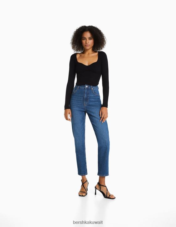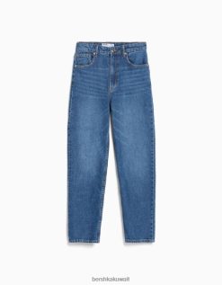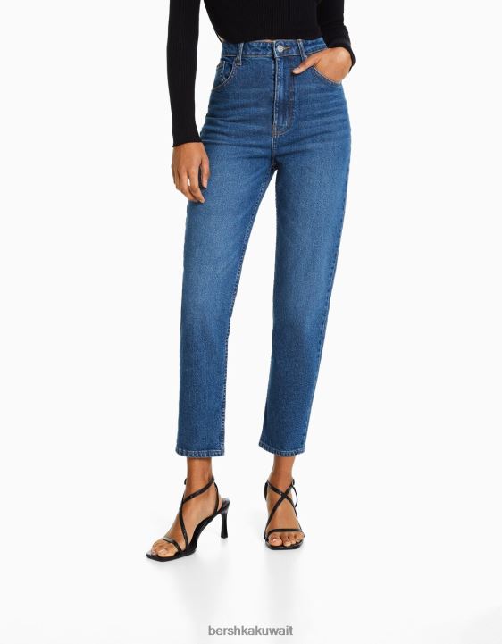Bershka نحيف بنطال جينز أمي بقصة ضيقة ومريح أزرق 804X1987 ملابس