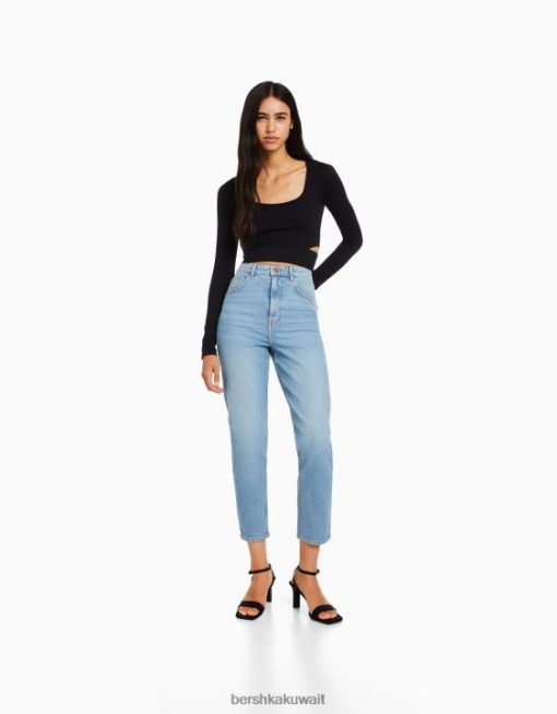Bershka نحيف بنطال جينز أمي بقصة ضيقة ومريح أزرق فاتح 804X1992 ملابس