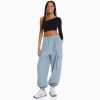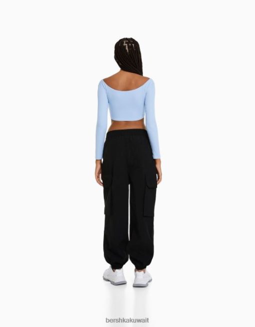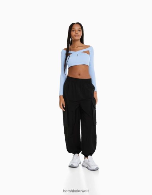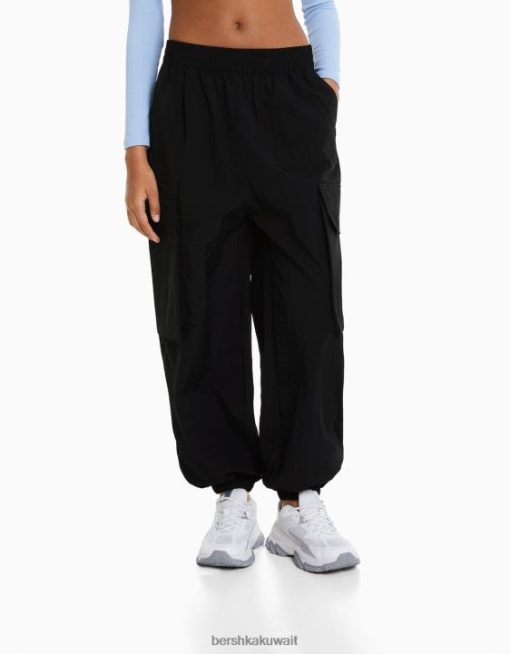 Bershka نحيف بنطال رياضي من النايلون مع جيوب أسود 804X1336 ملابس